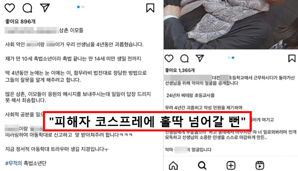 "사돈의 팔촌까지 공개 할 것", 대전 교사 '가해 학부모 신상' 폭로 계정 등장..."촉법 믿고 정의구현 가즈아" 용기 있는 10대 홍길동 '등장'?